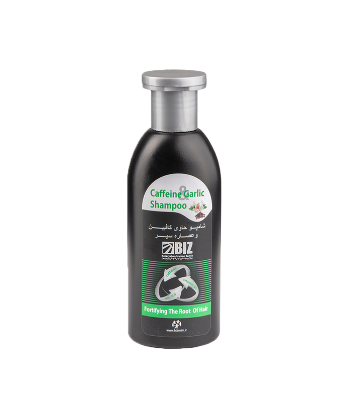 شامپو کافیین حاوی عصاره سیر BIZ حاوی ترکیبات موثر کافیین، عصاره سیر و دکسپانتنول میباشد که باعث تقویت مو، ترمیم و افزایش استحکام مو و جلوگیری از ریزش و بهبود شوره سر می شود.
