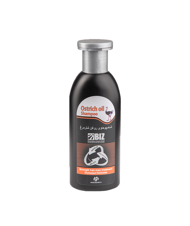 شامپو حاوی روغن شترمرغ بیز با بهره گیری از ترکیبات طبیعی به موها استحکام می بخشد، موی سر را از ریشه تا انتها قوی کرده، پوست سر را مرطوب نگه داشته و از پوسته شدن آن جلوگیری می نماید. این شامپو همچنین به افزایش سرعت رشد مو کمک بسیاری می کند. روغن شترمرغ موجود در این محصول بافت های سست شده مو را ترمیم کرده و موجب تحریک و رشد مو در همه ناحیه های سر می شود.